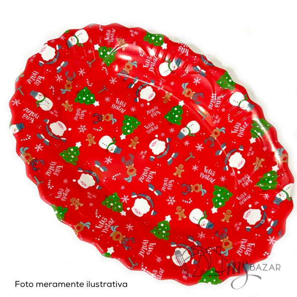 A Bandeja Plástica Oval com tema natalino da Wincy é perfeita para trazer mais beleza e praticidade à sua mesa durante as festas de fim de ano. Com um design festivo e tamanho generoso de 42x31x6 cm, ela é ideal para servir doces, frutas, petiscos e outras iguarias típicas das celebrações.