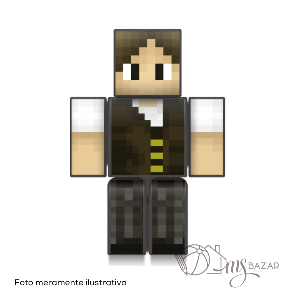 Acessórios Inclusos: O boneco vem com 3 acessórios que complementam o visual e a temática Minecraft, permitindo que a criança personalize a figura e crie novas narrativas. Os acessórios podem incluir itens como uma picareta, uma espada ou outros equipamentos de jogo.