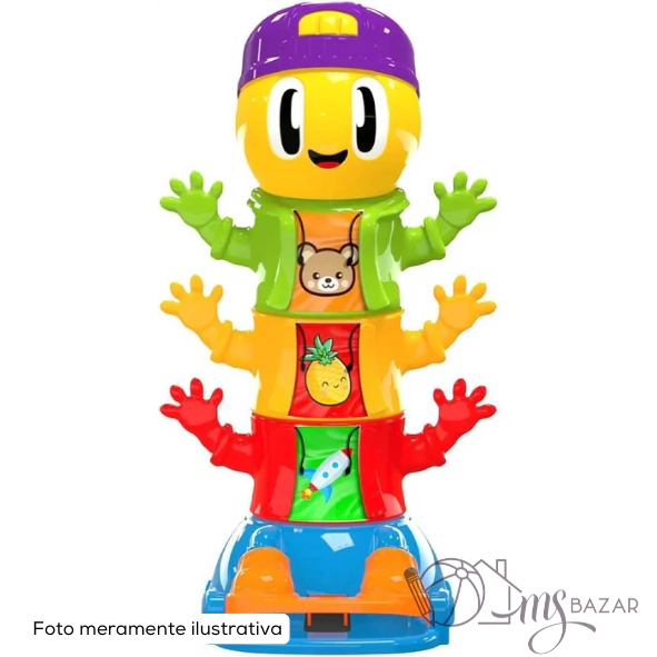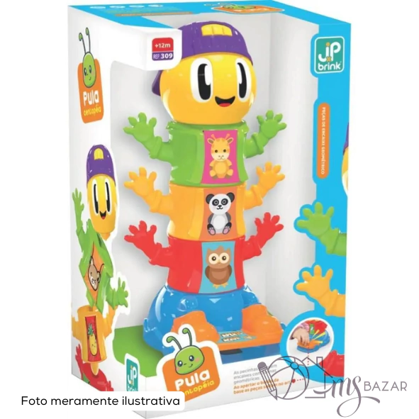 Função: O brinquedo é projetado para "pular" ou se mover com uma ação de apertar ou empurrar (geralmente com uma mola ou mecanismo de pressão), o que o torna uma fonte de surpresa e risadas para a criança.