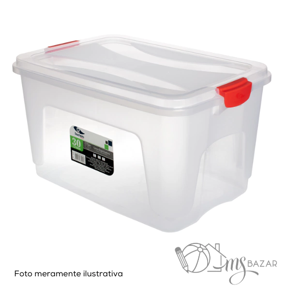 A Caixa Organizadora Plástica Alta Transparente de 30 Litros da Rischioto é perfeita para quem precisa de uma solução eficiente e durável para o armazenamento de itens grandes e volumosos.