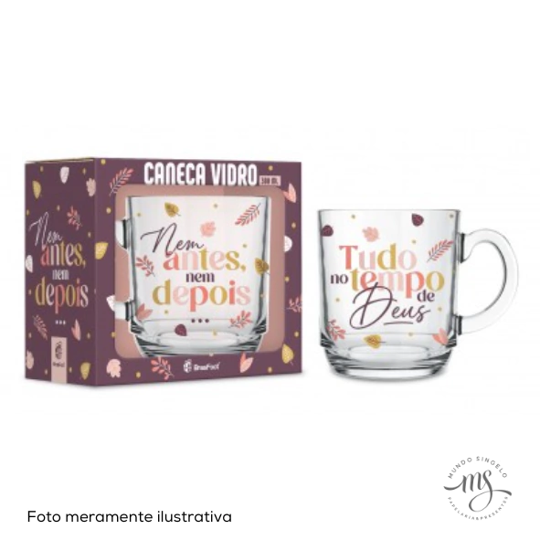 Caneca de Vidro Elegance 300ml Fé 1 Tempo de Deus - Brasfoot Presentes