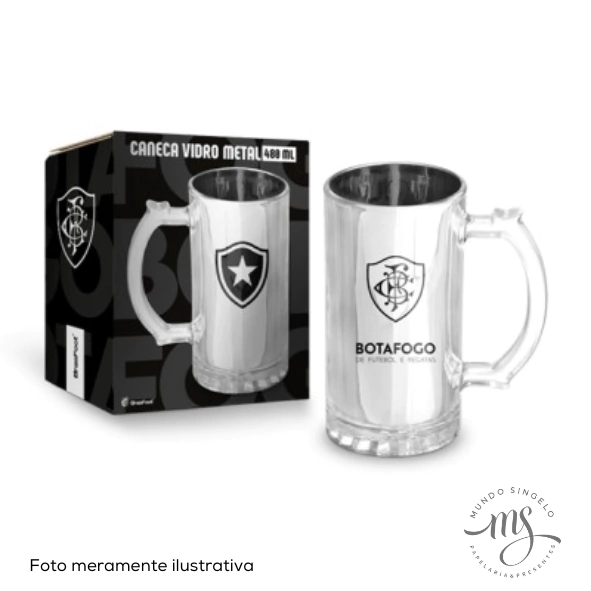 A Caneca de Vidro Metálico de 480ml do Botafogo, da BrasFoot Presentes, é uma escolha elegante e cheia de personalidade para os torcedores apaixonados pelo Glorioso. Com sua capacidade de 480ml, é perfeita para desfrutar de suas bebidas favoritas enquanto celebra as vitórias do seu time.