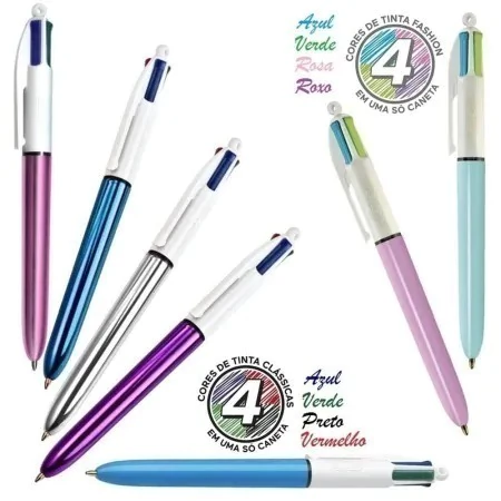 Características da Caneta Bic 4 Cores Retrátil Fashion Azul: