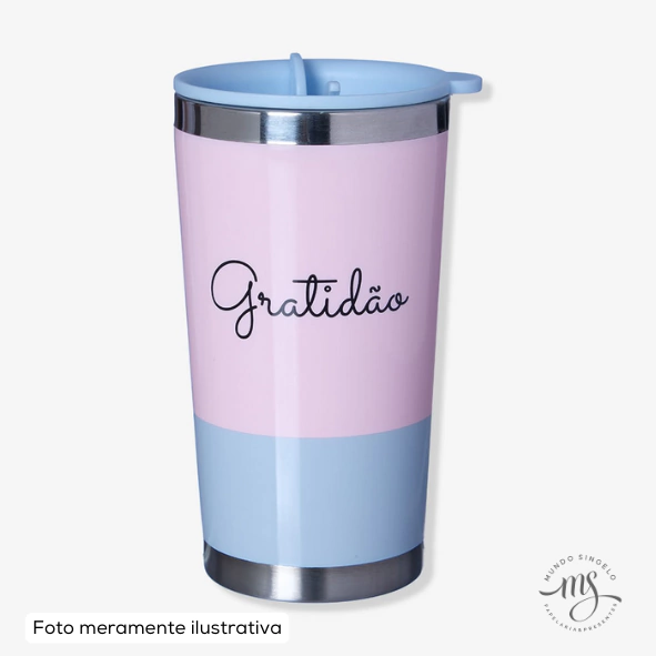 Copo Viagem Tony de 350ml Com Tampa Tema Gratidão - Zona Criativa