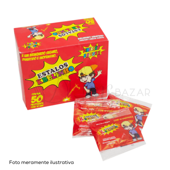 Conteúdo: Caixa com 50 pacotes, cada pacote contendo 10 unidades, totalizando 500 estalinhos