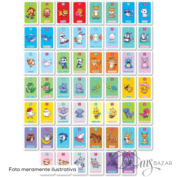 Vocabulário: As imagens nas cartas auxiliam no desenvolvimento da linguagem e na nomeação dos elementos ilustrados.