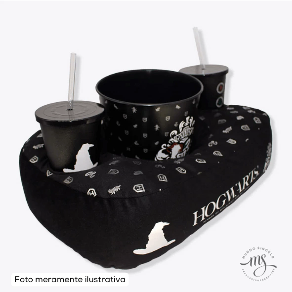 O Kit Almofada Porta Pipoca e Copo Suede Hogwarts, da Zona Criativa, é o acessório perfeito para os fãs de Harry Potter que adoram maratonar filmes ou séries com conforto e praticidade. Feito com material suede suave ao toque, o kit inclui uma almofada confortável, um balde de pipoca grande e dois copos com tampa e canudo. Com o brasão de Hogwarts estampado, este conjunto combina estilo e funcionalidade, transformando qualquer sessão de cinema em casa em uma experiência mágica.