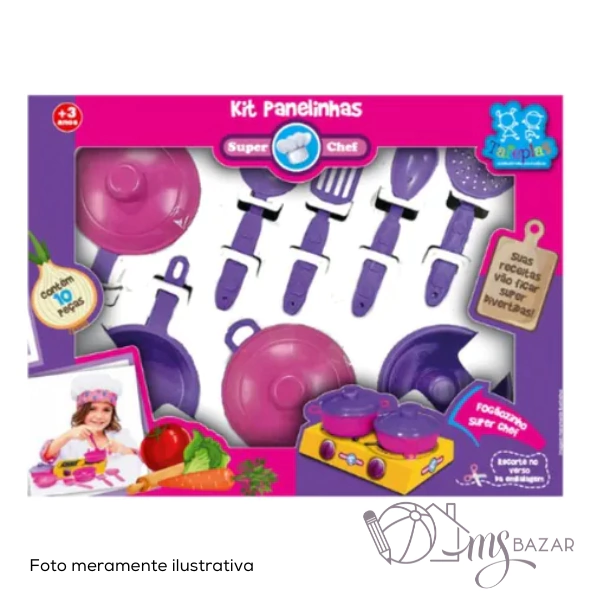 Modelo: Kit de Panelinhas Super Chef, um conjunto que simula utensílios e panelas de cozinha.