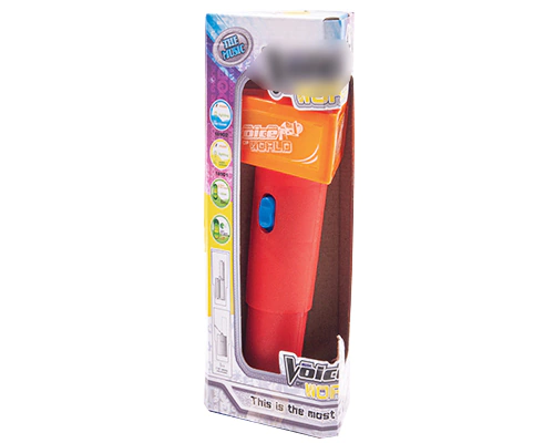 Microfone de brinquedo PowerSound, amplifica o som e acende luz! vem em 3 cores disponiveis Azul, Laranja e Vermelho. Requer 3 Pilhas aa (não inclusas) Dimensões: Largura: 10 cm Altura: 25 cm Comprimento: 10 cm