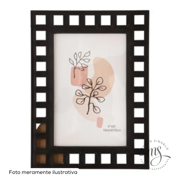 Formato: Retangular, ideal para fotos $10\text{x}15\text{cm}$ (vertical ou horizontal, dependendo do suporte traseiro).