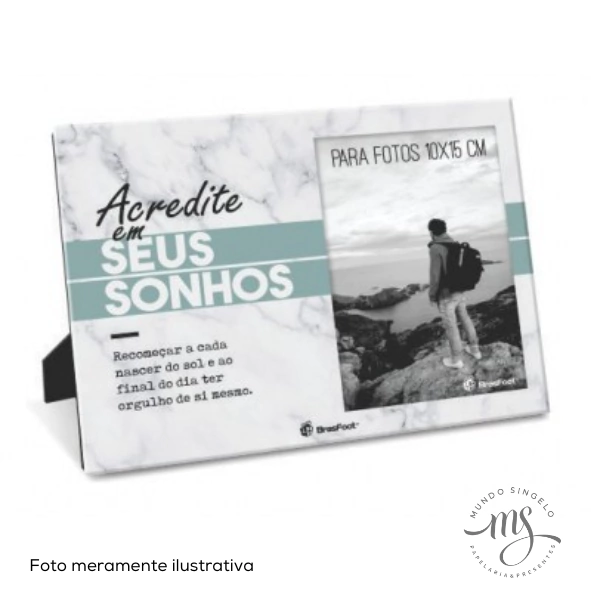 O Porta Retrato 10x15cm Vidro Tema Acredite Em Seus Sonhos da Brasfoot é uma opção delicada e cheia de inspiração para valorizar suas fotos mais especiais. Com uma mensagem motivacional, este porta-retrato se torna não apenas um objeto de decoração, mas também um lembrete constante de perseverança e crença no potencial.