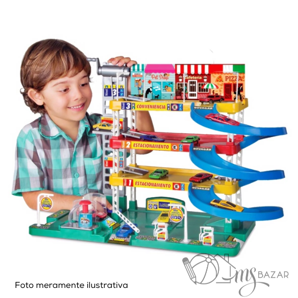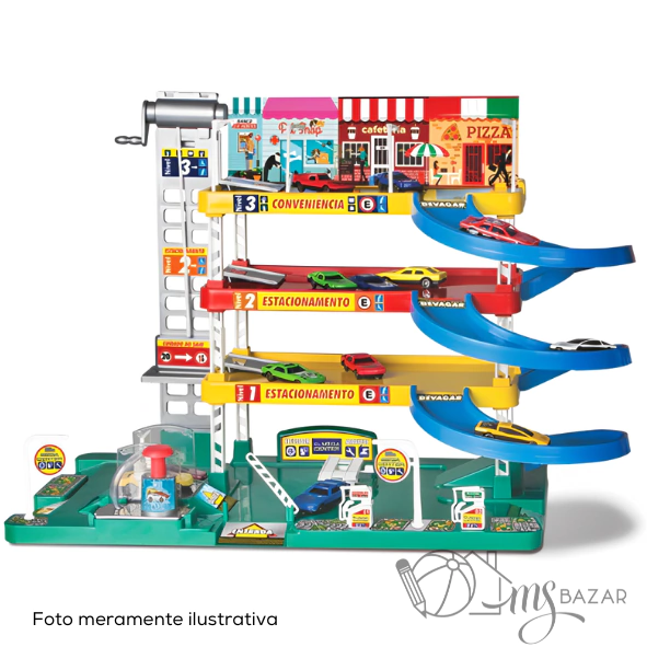 Estacionamento Multifuncional: Inclui um estacionamento de vários andares onde as crianças podem estacionar os carrinhos e criar cenários variados.