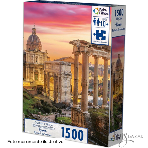 O Quebra-Cabeça Roma Ruínas do Fórum, da Pais e Filhos, é uma impressionante representação das históricas e majestosas ruínas do Fórum Romano, em uma montagem de 1500 peças. Esse quebra-cabeça oferece um desafio envolvente para montadores mais experientes, proporcionando uma experiência relaxante e gratificante ao recriar a beleza da Roma Antiga. Ideal para quem aprecia a história, arquitetura e grandes desafios de quebra-cabeça, este produto garante horas de diversão e concentração.