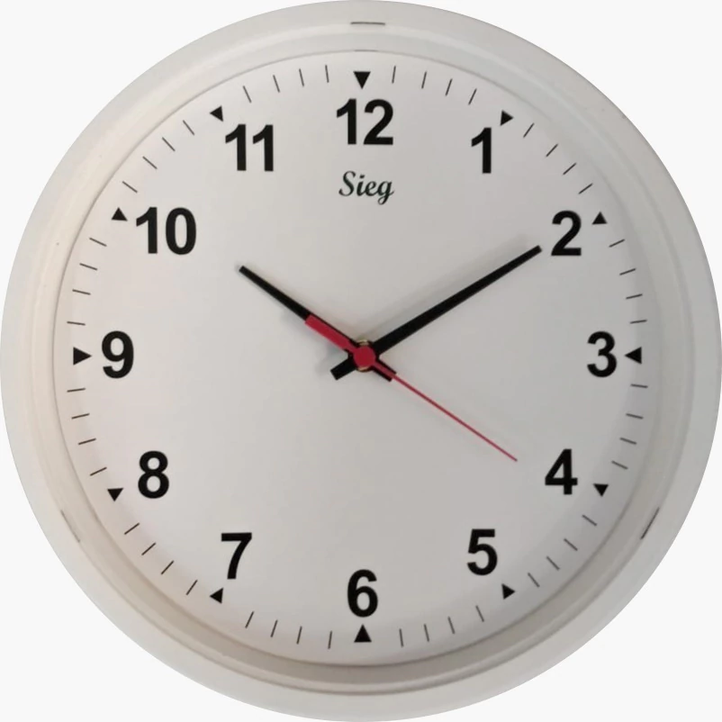 Relógio redondo branco fundo branco em Aro plástico com design moderno, ideal para decorar e harmonizar o seu ambiente.