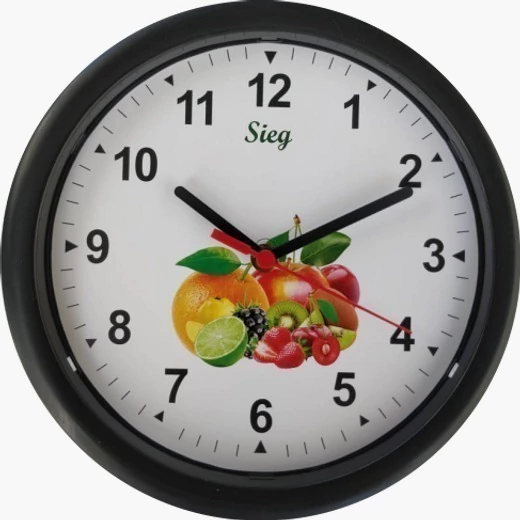 Relógio redondo preto fundo branco em aro plástico com design moderno, ideal para decorar e harmonizar o seu ambiente.