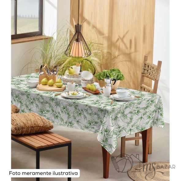 Dimensões: 1,40 x 2,10 metros, perfeita para mesas retangulares de tamanho médio a grande.
