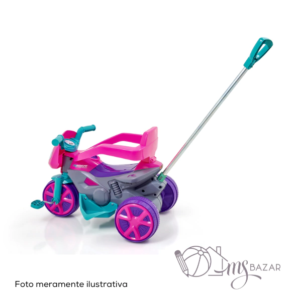 Design e Funcionalidade: O grande diferencial é a barra de empurrar. A barra permite que os pais ou os cuidadores controlem o movimento do triciclo, o que torna o passeio mais seguro e confortável para a criança. O design que remete a uma moto de corrida, com a cor rosa, o torna ainda mais atraente.